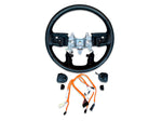 Upgrade today to the Infotainment.com exclusive brand new factory OEM Ram black leather steering wheel with rear mounted audio controls. This upgrade is 100% fully plug & play. Enhance the touch & feel of a genuine OEM leather steering wheel and add the convenience of rear mounted audio controls. You'll have the ability to adjust the audio system volume, tuning, seek, and source modes. Simply remove the factory installed vinyl steering wheel and replace with our complete assembly.